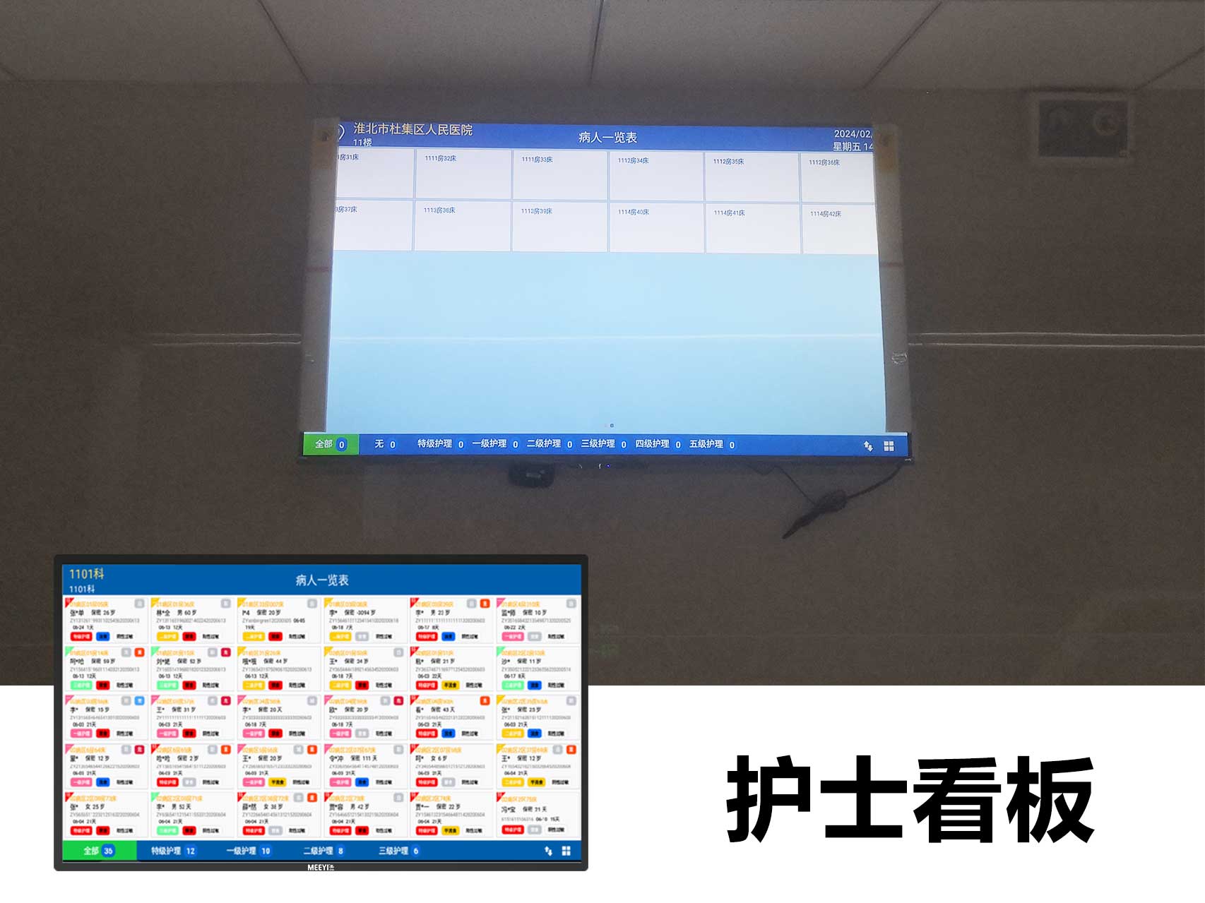 項目介紹淮北市杜集區人民醫院淮北市杜集區人民醫院建院于1986年,占地面積3800平方米,建筑面積6800平方米,是一所集醫療、預防、康復、保健、人口與計劃生育、基本公共衛生服務于一體的國有、非盈利性綜合性“一級甲等”醫院和“愛嬰醫院”。此次淮北市杜集區人民醫院智能化改造采用了我司自主研發的“MEEYI美一”智慧醫養綜合解決方案。通過該方案可以實現: